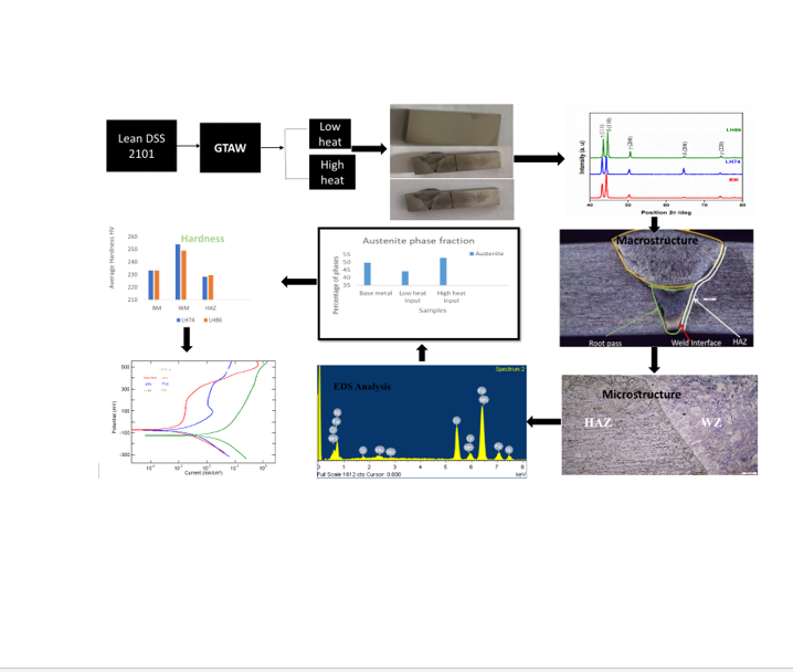 - Gas tungsten arc welding (GTAW) is performed on LDSS 2101 with different heat energy inputs.